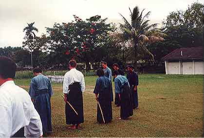 In 1978, Malcolm Tiki Shewan Sensei approaches Pascal Krieger to know more about Jôdô, discipline he practised for the first time in 1976 with Mitsuzuka Sensei. It is the start of a very enriching exchange: Shewan Sensei, Aikidô teacher, at the time already a convincing expert in Iai and Ken, helps Pascal Krieger to fill up the gaps existing in his Iai practice while completing his Jôdô study with him. From that time, Shewan Sensei, along with his closest Iai students (Floréal Perez, Dominique Pierre, Raff Raji, Daniel Leclerc, etc.) gets more seriously into Jôdô and includes this discipline in most of the seminars given around Europe. Thanks to this, the Swiss group and the AHJ (Association helvétique de Jodo) becomes much more widely known and the demand for Jôdô seminars grows drastically.