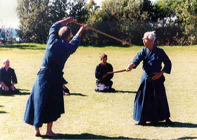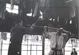Entraînement de Kenjutsu, avec Me Shimizu en 1970 au Rembukan